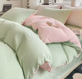 Crafted from a luxurious mix of polyester and cotton, this two-tone bedding set combines the smooth elegance of satin with the gentle softness of natural fibers.
